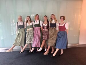 Unsere Mitarbeiterinnen und Mitarbeiter haben den Festtag genutzt, um Dirndl und Lederhose in den Kanzleialltag zu bringen. Zwischen Akten und Paragrafen entstand so ein Bild, das Tradition und Moderne verbindet; ganz so, wie es auch unsere Arbeit prägt.