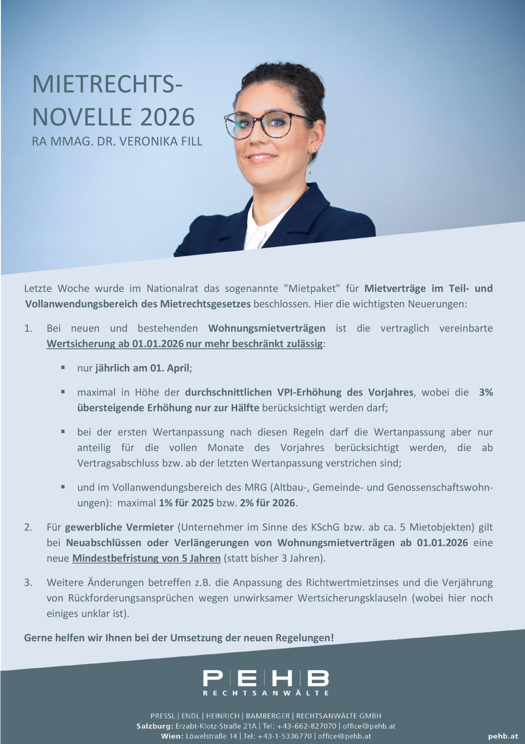 PEHB-IMMO-UPDATE MIETRECHTS- NOVELLE 2026